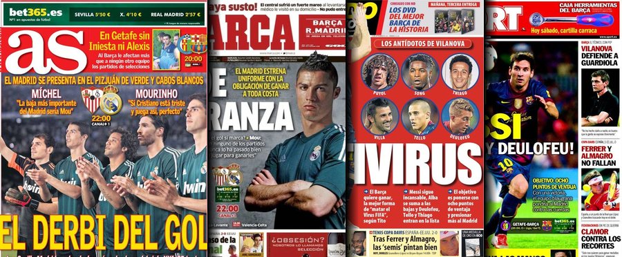 Portadas de las cuatro principales cabeceras de la prensa deportiva española.