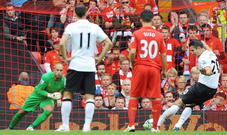 Con el primer disparo entre los tres palos de los de Alex Ferguson, en el minuto 51, el brasileño Rafael Da Silva empató el encuentro ante unos reds que jugaron cincuenta minutos con diez, y el holandés Robin Van Persie estableció de penalti la ventaja definitiva para los visitantes a diez minutos del final.
