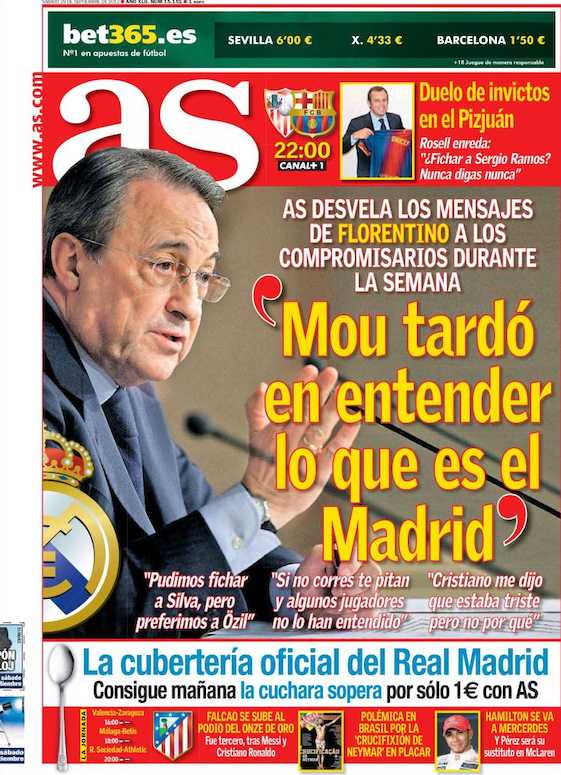 "Florentino: 'Mou tardó en entender lo que es el Madrid'"