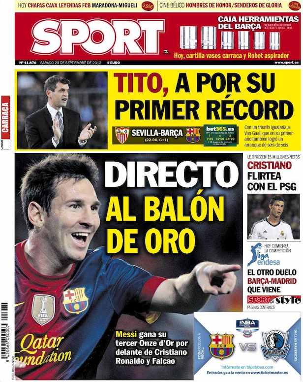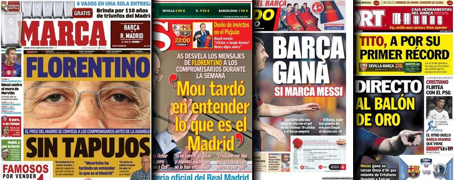 Portadas de las cuatro principales cabeceras de la prensa deportiva española.