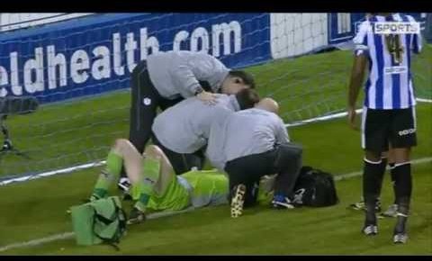 Un aficionado agrede salta al campo y agrede a Kirkland, portero del Sheffield Wednesday.