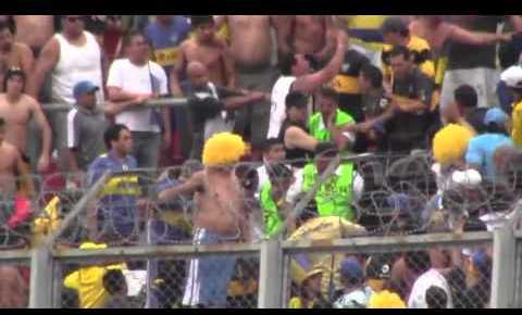 Espeluznantes imágenes de la paliza que propinaron algunos de los hinchas a agentes de seguridad del estadio en el partido River Plate - Boca Juniors.