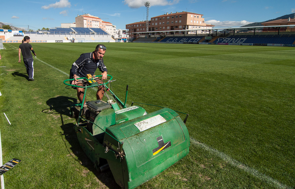 Un último esfuerzo para que el césped quedase en las mejores condiciones para el partido
