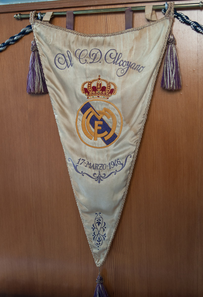 Alineaciones históricas del Alcoyano, en la pared del pub God, cerca de El Collao