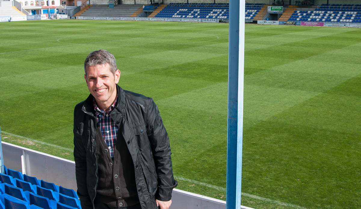 Juan Serrano, presidente del Alcoyano, sonríe pese a encontrarse en el que quizá fue uno de los días más ocupados de su vida