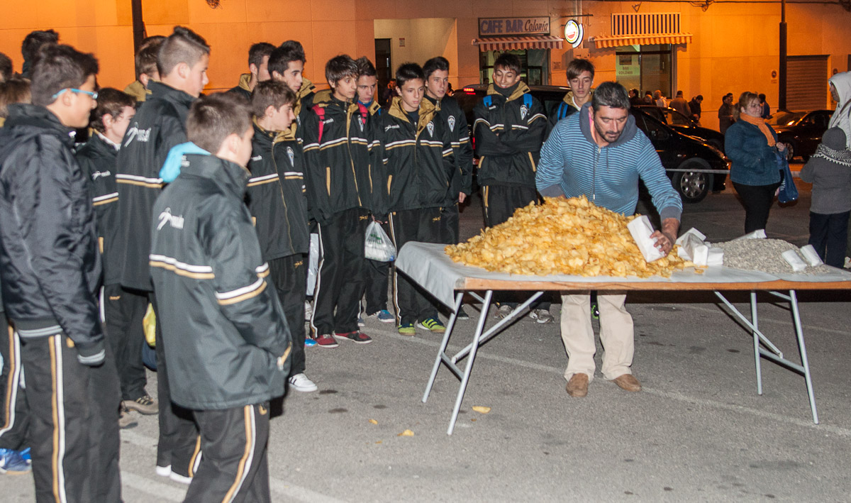 Un hombre pone en marcha su pequeño negocio rodeado de jugadores de las categorías inferiores del CD Alcoyano