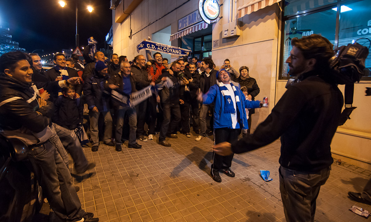 Cuatro horas antes del partido ya había alcoyanistas reunidos en el local de las Huestes Blanquiazules