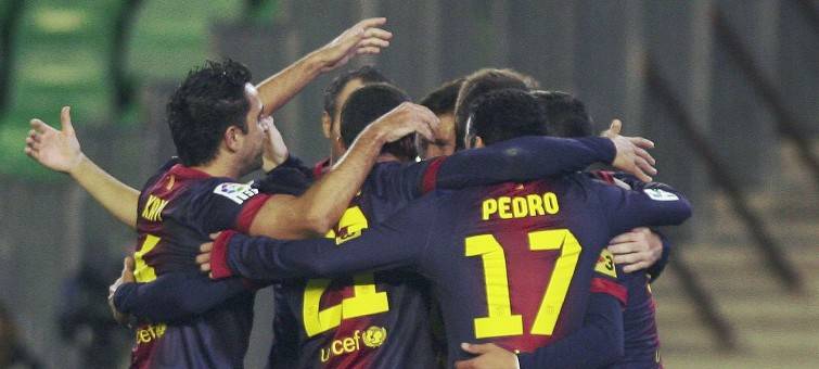 FC Barcelona, 2: Pinto, Alves (Montoya, min. 77), Mascherano, Piqué, Alba; Song, Thiago, Xavi; Pedro (Alexis, min. 66), Villa (Tello, min. 83) y Messi