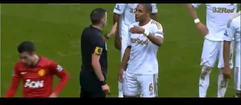 Un pelotazo de Ashley Williams a Robin Van Persie en la cabeza, durante la segunda mitad del partido de la Premier League que el Swansea y el Manchester United disputaron este domingo (1-1), provocó una gran tangana sobre el césped del Liberty Stadium. El técnico de los red devils, Sir Alex Ferguson, dijo tras el partido que el delantero holandés "tiene suerte de estar vivo".