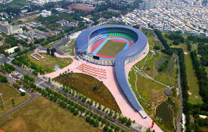 Con una capacidad para 55.000 espectadores, alberga los partidos de los equipos de la Selección de fútbol de China Taipéi. Pero el estadio, con forma en semi-espiral evocando a un dragón, brilla por ser el primero en proporcionar energía usando tecnología fotovoltaica. Los paneles solares cubren la cara exterior del estadio y generan la energía requerida para su propio funcionamiento.