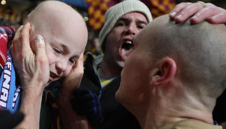 Quince días después, cuando el equipo cerró su histórica clasificación para la final en el Villa Park, Gary Jones, capitán del Bradford, no lo dudó un segundo: se fue a la grada en busca de aquél chico, y le dedicó la victoria con un beso. En la cabeza.