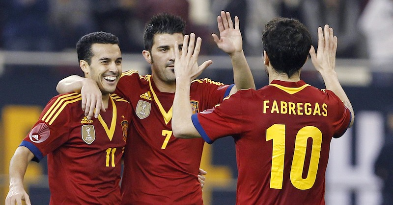 En los dos únicos partidos en los que Pedro se ha quedado sin mojar, de los seis últimos que ha jugado la selección, ha sido ante Georgia en Tiflis (victoria por 0-1 con gol de Soldado) y contra Francia en el estadio Vicente Calderón (empate a uno, con Sergio Ramos como autor del tanto español).