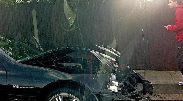 Así quedó el coche del hoy jugador del Barça tras un accidente sufrido en Londres, durante su etapa en el Arsenal.