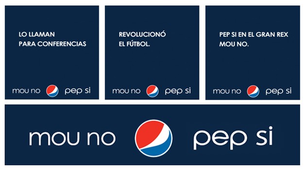 Cuando hay una batalla publicitaria de por medio, todo vale. Eso es lo que debe haber pensado Pepsi en Argentina que, aprovechando la presencia de Guardiola en el país, ha iniciado una campaña en la que hace un juego de palabras en pro del técnico catalán y en contra de Jose Mourinho.