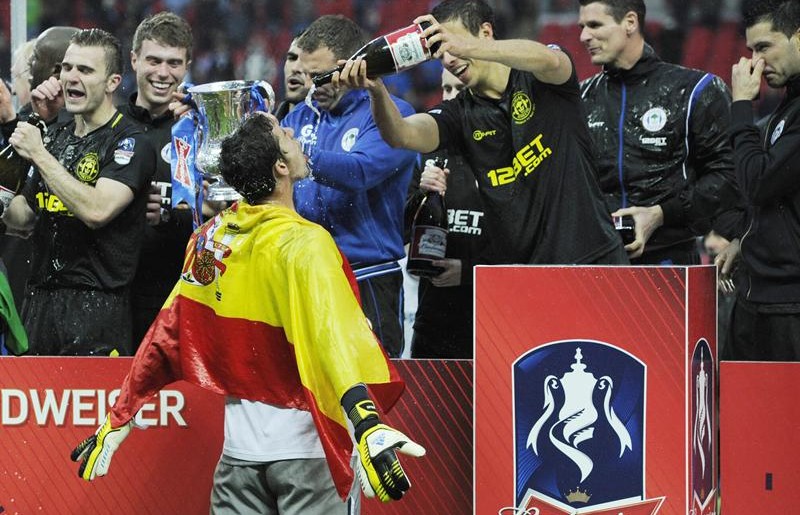 Un remate de cabeza del inglés Ben Watson en el descuento otorgó la Copa de Inglaterra (FA Cup) al modesto Wigan del español Roberto Martínez, que tumbó en Wembley al Manchester City. Los latics se hicieron con el primer trofeo de primer nivel en su historia ante los cinco veces campeones del torneo, que terminaron con diez hombres sobre el campo por la expulsión del argentino Pablo Zabaleta.