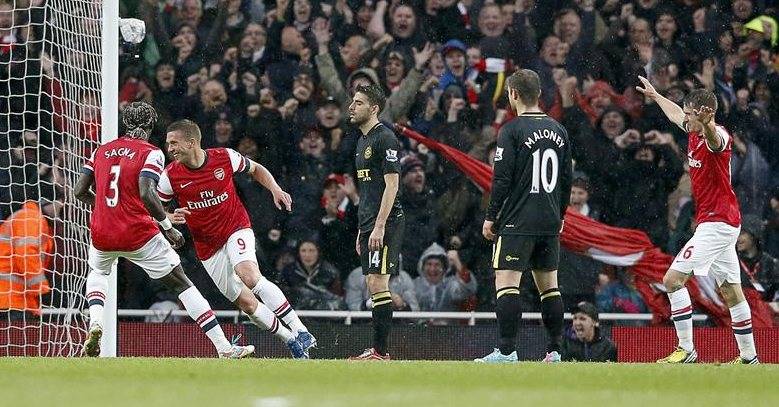 Sin embargo, el equipo del Gran Mánchester cayó sin paliativos en su visita a la capital británica, apenas 72 horas después de conquistar la FA Cup tras superar al Manchester City en Wembley (1-0). Lukas Podolski adelantó pronto a los gunners (m.11), mientras que Shaun Maloney igualó antes del descanso. Pero en la segunda parte se hizo patente la superioridad del conjunto de Arsene Wenger, que sentenció a los latics con los tantos de Theo Walcott (m.63), de nuevo Podolski (m.68) y Aaron Ramsey (m.71).