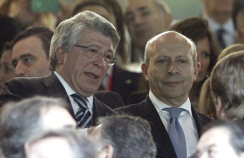 Enrique Cerezo, presidente del Atlético de Madrid, estuvo en el palco del Bernabéu junto al ministro de Educación, Cultura y Deporte, José Ignacio Wert, y el presidente del CSD, Miguel Cardenal.