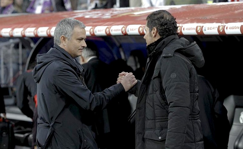 José Mourinho y Diego Simeone se saludaron afectuosamente antes del comienzo del partido.