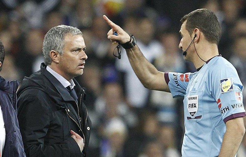 El árbitro Clos Gómez no titubeó a la hora de expulsar a José Mourinho por sus protestas a las primeras de cambio.