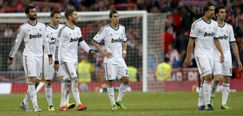 Los futbolistas del Real Madrid, cabizbajos tras la derrota.