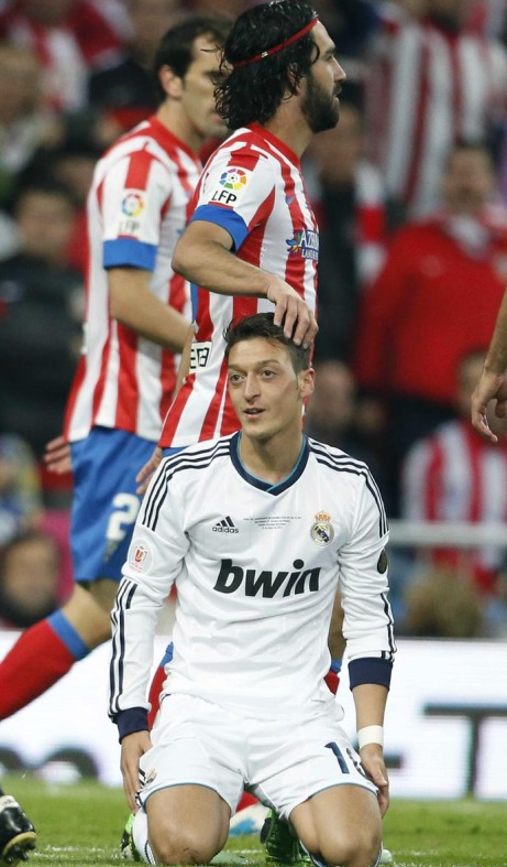 El Madrid tuvo tres tiros al palo, entre ellos uno de Mesut Özil, quien se lamenta tras fallar una ocasión.