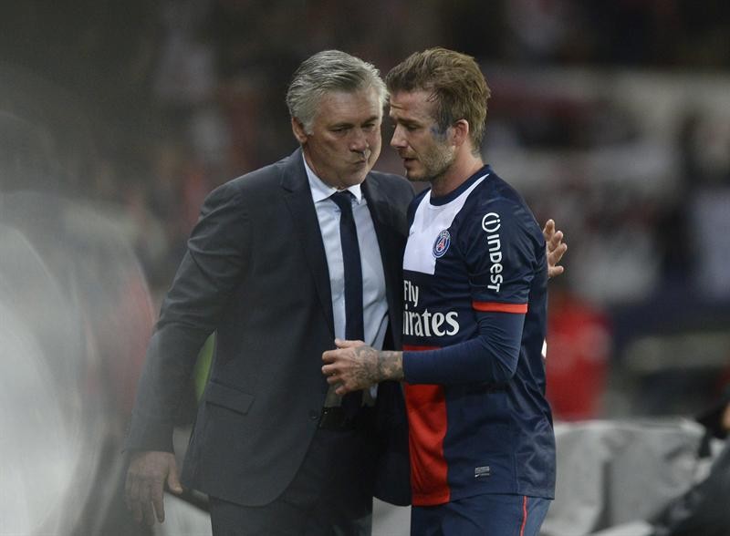 Ancelotti sustituyó a Beckham en el minuto 80 y lo recibió en la banda con un gran abrazo.