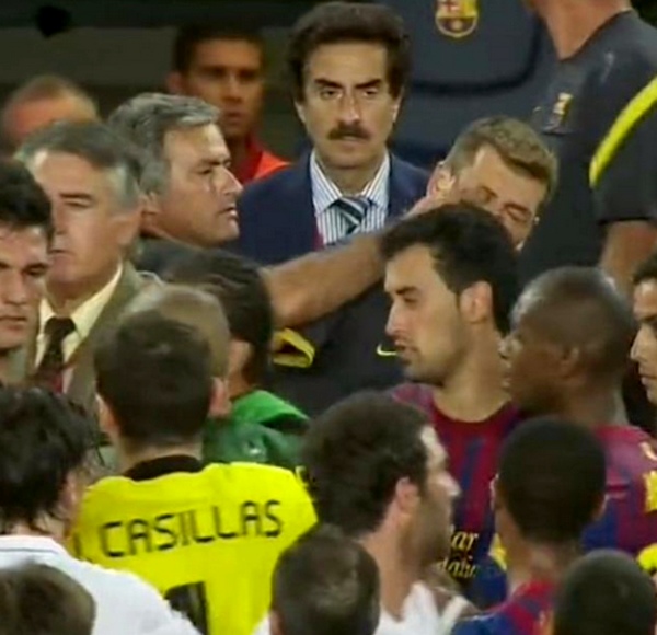 Una de las imágenes más tristemente famosas de la historia del fútbol. Con la canícula de agosto apretando de lo lindo, el partido de vuelta de la Supercopa de España entre Barcelona y Real Madrid en el Camp Nou acabó como el rosario de la Aurora y con el portugués metiendo el dedo en el ojo al entonces segundo técnico culé, Tito Vilanova.