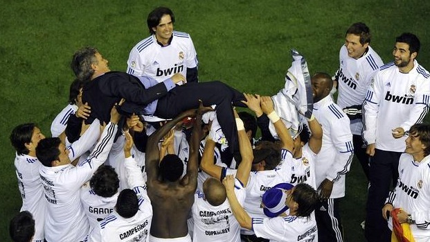Si por algo será recordado Mourinho en el Madrid es por haber acabado con la hegemonía del mejor Barça de la historia. El primer gran triunfo ante los culés llegó el 20 de abril de 2011 en la final de Copa del Rey en Mestalla (1-0), con un gol de Cristiano Ronaldo en la prórroga. Y los jugadores no dudaron en celebrarlo manteando a su entrenador.