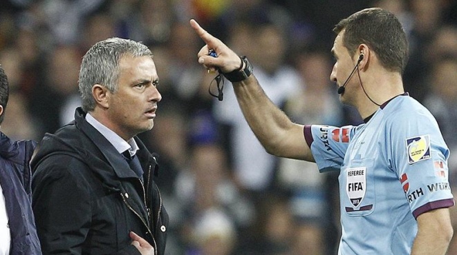 Mourinho fue expulsado en el minuto 75 de la final de Copa en el Bernabéu por "levantarse del banquillo protestando con los brazos en alto de manera reiterada", según el acta del colegiado aragonés Carlos Clos Gómez.