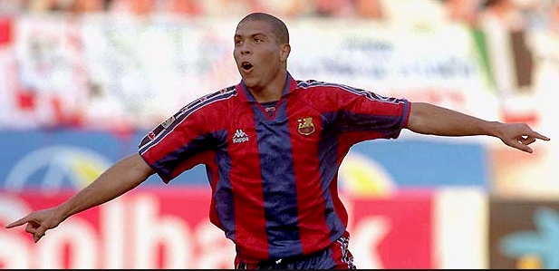 El auténtico 'Fenómeno' del fútbol brasileño. Ronaldo Luis Nazario da Lima, simplemente Ronaldo, fue fichado por el Barça de José Luis Núñez en 1996. Sólo estuvo una temporada en el equipo catalán, en la que logró 34 goles en 37 partidos. Tras obtener el FIFA World Player, ya con la camiseta del Barça, ganó la Copa del Rey, la Recopa de Europa, la Supercopa de España y acabó subcampeón de la Liga. Su gol al Compostela fue sencillamente antológico, de lo mejor de la historia del fútbol español.