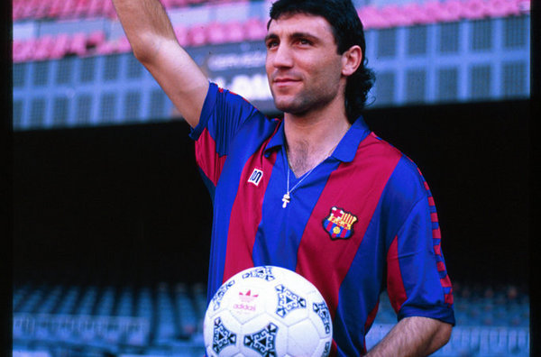 Uno de los miembros más destacados del ´Dream Team´ de Cruyff, el extremo búlgaro fue fichado por el Barça en 1990, después de las semifinales de la Recopa contra su entonces equipo, el CSKA de Sofía. En aquella eliminatoria, Stoichkov marcó 3 goles al equipo de Johan Cruyff. Como jugador del Barça fue fundamental para la consecución de 4 Ligas consecutivas, marcando un total de 83 goles. El ´Balón de Oro´ de 1994 fue traspasado al Parma por una cantidad cuatro veces mayor de la que había pagado el Barça por él.