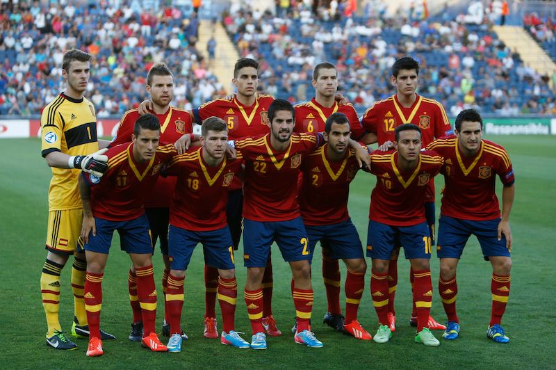Éste fue el once para la final que puso en liza Julen Lopetegui. De izquierda a derecha y de arriba a abajo: De Gea, Illarramendi, Bartra, Íñigo Martínez, Morata, Tello, Alberto Moreno, Isco, Montoya, Thiago y Koke.