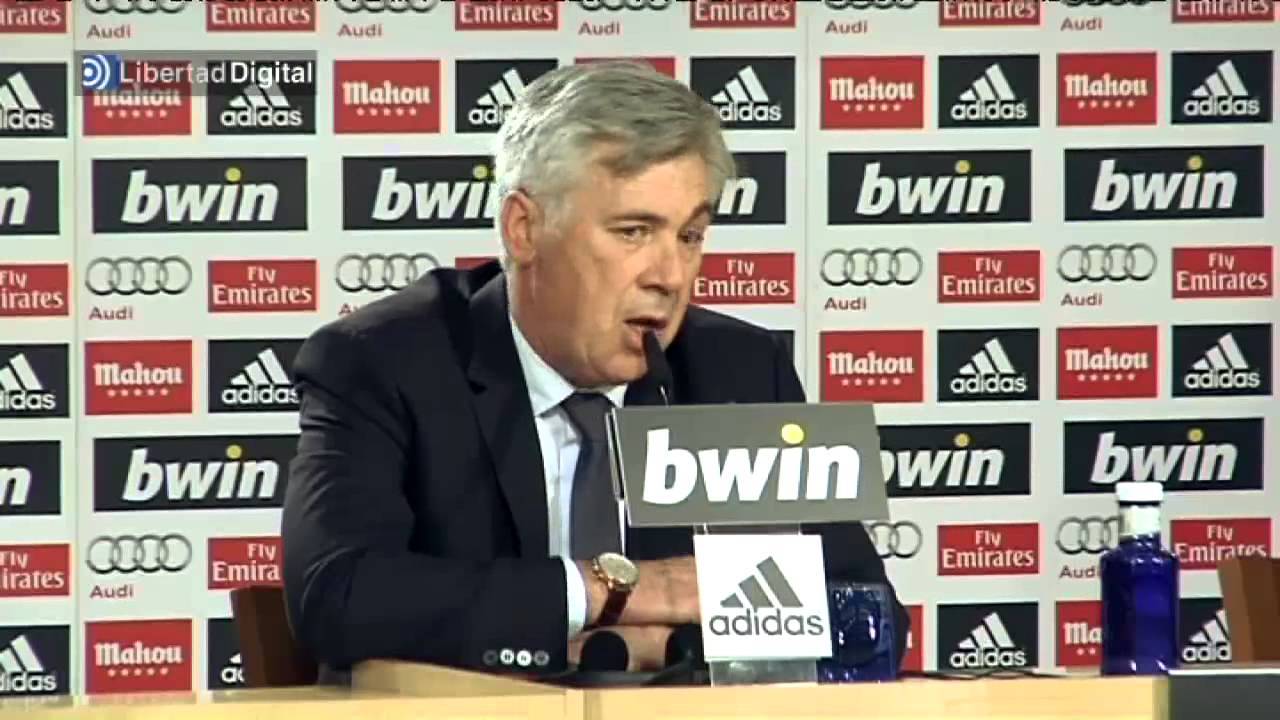 "Estoy mu feliz de estar aquí. En el club más prestigioso del mundo, lo se bien y por eso estoy muy feliz... El objetivo es claro aquí, el club más prestigioso del mundo tiene que ganar, jugando un fútbol espectacular porque la historia y la tradición del club es jugar ofensivo y espectacular", fueron las primera palabra de Ancelotti como técnico madridista..