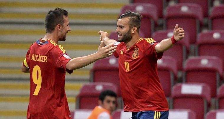 España, 2: Sotres; Jonathan Otto, Llorente, Derik, Gayá; Campaña (Suso, m. 46), Saúl Ñíguez; Jesé (Aketxe, m. 89), Óliver Torres, Rubén (Denis Suárez, m. 77); y Paco Alcácer.