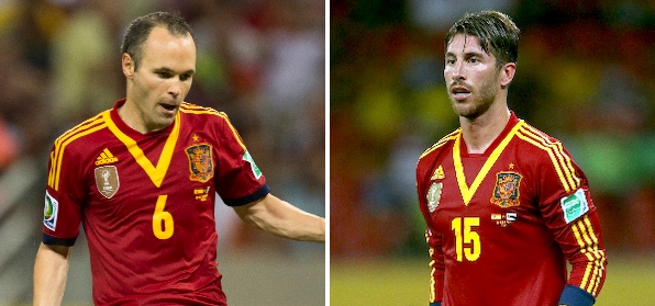 Iniesta, que fue elegido mejor jugador del partido del estreno contra Uruguay (2-1), se postula nuevamente como máximo protagonista de un trofeo tras estar nominado los últimos años a Mejor Jugador Europeo por la UEFA y optar al Balón de Oro. Por su parte, Ramos se ha convertido en el jefe de una zaga española, que sólo ha concedido un tanto en todo el torneo. El sevillano es el jugador de campo que más balones ha recuperado y despejado.