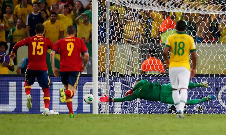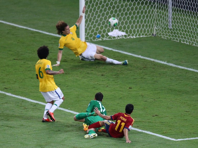 A los 39 minutos, cuando el marcador todavía era de 1-0, Pedro tuvo una gran ocasión para haber establecido el empate. El canario batió a Julio César con su remate, pero no así a David Luiz, que apareció como una exhalación para sacar la pelota casi en la misma raya de gol.