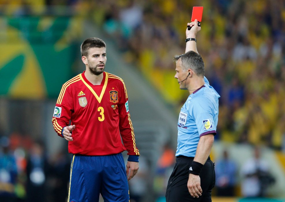 Gerard Piqué fue expulsado con roja directa por el árbitro holandés Bjorn Kuipers, mediado el segundo tiempo, tras una dura entrada sobre Neymar.