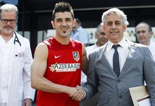 comentarios Nada más terminar el reconocimiento, el delantero firmó sus primeros autógrafos como jugador colchonero.