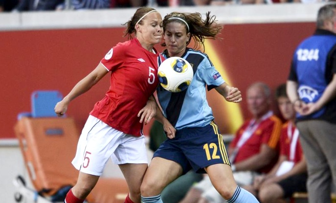 Fue el preludio del gol de Gulbradsen. Heglan no acertó a rematar el centro-chut de la jugadora del Vålerenga FB, pero su movimiento despistó a Ainhoa Tirapu, que no pudo evitar la ventaja noruega cuando se cumplía el minuto 24. El gol de Gulbradsen desarboló el planteamiento de Quereda y, con Vero Boquete como víctima del férreo marcaje de Christensen y Ronning, el ataque español se limitó a dos apariciones de Adriana Martín y Jennifer Hermoso.