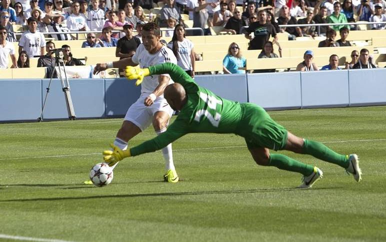 Sin embargo, no tardó en resarcirse. Siete minutos después Ozil le volvió a encontrar y el portugués regateó con inteligencia al guardameta Howard para enviar el balón al fondo de la red con precisión.