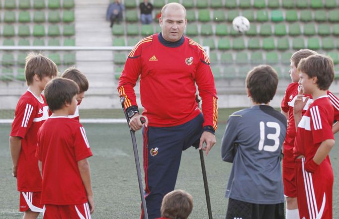 El fútbol le llevó desde muy pequeño a superar todas las barreras lógicas que se ponen por delante al tener que manejarse diariamente con las muletas. La pierna ortopédica que usó en sus primeros años terminó por quedar guardada en un armario: sin ella y con las muletas podía jugar al deporte que amaba.