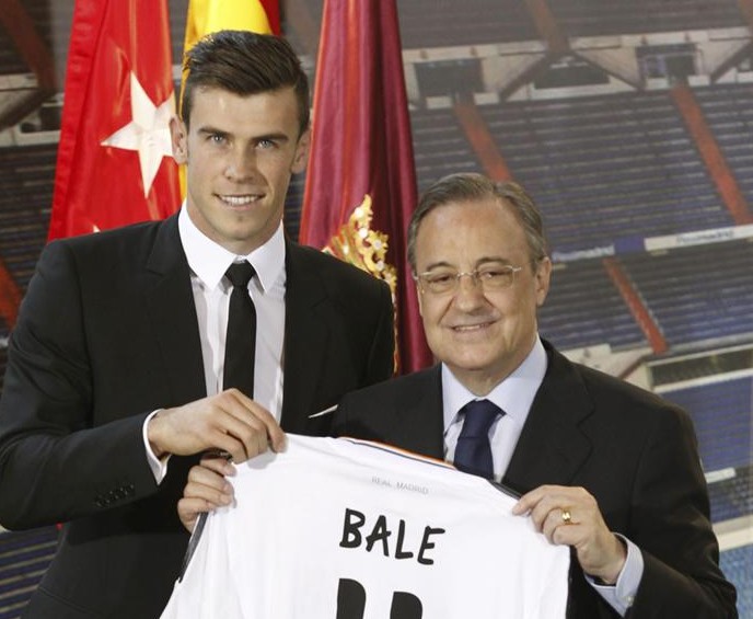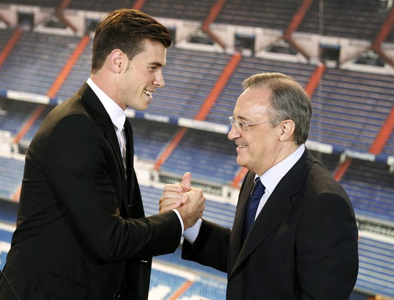 Saludo entre Bale y el presidente de su nuevo club, el Real Madrid