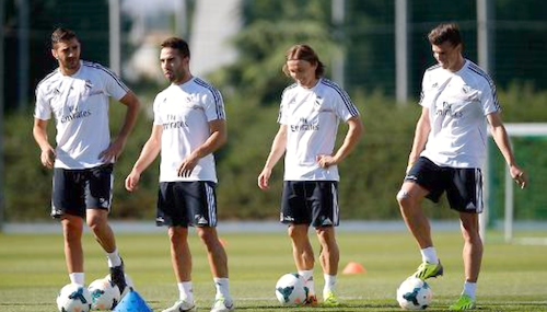 El técnico madridista Carlo Ancelotti recuperó a sus internacionales y algunos de ellos como Iker Casillas, Dani Carvajal, Nacho Fernández, Jesé, Karim Benzema y Álvaro Morata trabajaron con intensidad. A ellos se sumó el canterano José Rodríguez y el croata Luka Modric, que regresó con molestias y ha estado los dos últimos días fuera del grupo.