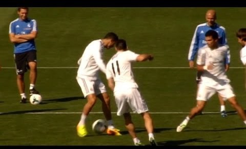 Bale le hace un 'caño' a Cristiano en un rondo durante el entrenamiento