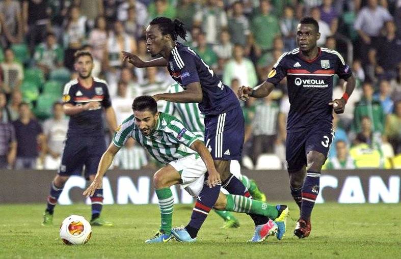 A pesar de que el Olympique venía con más nombre, el Betis no se arrugó en su regreso a una competición europea. La mayoría de la primera mitad estuvo falta de ocasiones, en gran parte por la buena organización defensiva de ambos conjuntos, sobre todo el Lyon, que en tres cuartos de cancha conseguía presionar a los verdiblancos para que no pudiesen elaborar jugadas en los metros finales.