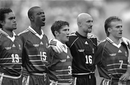 Por eso, no es de extrañar que la Federación Francesa le ofreciera jugar con la selección absoluta. Pese a unas leves reticencias al principio, por un choque moral más que evidente, en 1992, mucho antes de labrarse un futuro brillante pasando por la Sampdoria italiana o el Real Madrid -con el que ganaría la ansiada Séptima- Christian Karembeu confirmó su decisión. Jugar para la selección francesa, pero negándose a cantar el himno nacional, ligado a la opresión a sus antepasados. El silencio se convertía para él en una forma de recuerdo. De homenaje. En ninguno de los 53 partidos que jugaría con los bleus lo haría. Aunque, como buen profesional y dedicado a la causa, no dejaría de ganar partidos y títulos para ellos. Un Mundial y una Eurocopa en dos años. Se dice pronto.