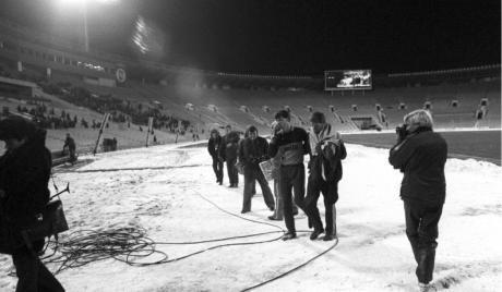El partido arrancó con unos diez grados bajo cero. Las condiciones climatológicas, con nieve y fuerte viento, eran prohibitivas para jugar a fútbol. Eso provocó que, por un lado, todos los aficionados -unos 18.000 soviéticos y 100 holandeses- se tuvieran que sentar juntos en la tribuna oriental, puesto que la mayor parte de las gradas estaban impracticables por la nieve y el hielo.