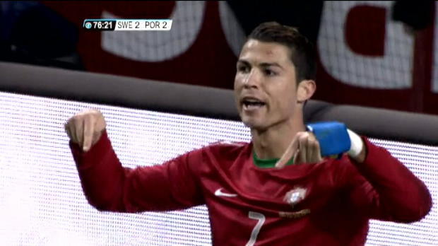 El delantero portugués consiguió marcar tres goles contra la selección sueca y de paso clasificar a Portugal para el próximo mundial de fútbol de Brasil 2014. Una actuación espectacular que le coloca como favorito para ganar el próximo Balón de Oro.