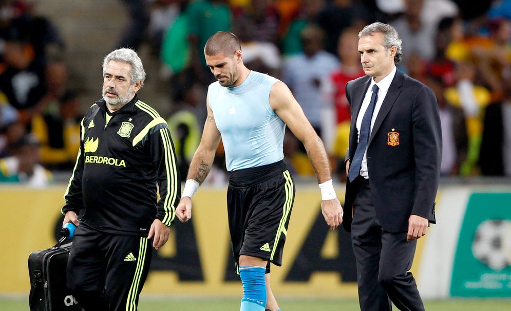 Valdés cayó lesionado en el amistoso que los campeones disputaron este martes en el Soccer City de Johannesburgo ante Sudáfrica (1-0).