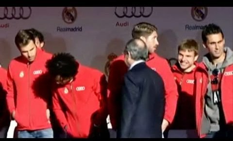 El central del Real Madrid evitó saludar al presidente del club en el acto de entrega de los Audi a la primera plantilla. Sergio Ramos cuando vio que se acercaba Florentino Pérez giró la cabeza y no le saludó. Una escena que muchos han interpretado como la escenificación del enfrentamiento entre Ramos y Florentino Pérez. En defensa del jugador, Isco parece que le reclama en el momento en el que pasa el presidente por su lado.